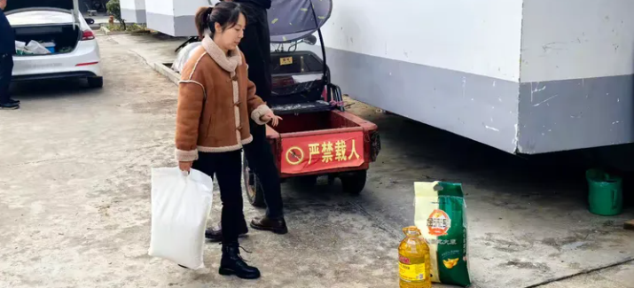 随后,在流水镇人大主席王鑫的陪同下,一行人走进焕然一新的新庄村,村里的面貌令人欣喜 ,再也不是之前的泥泞马路,水泥硬化道路连通家家户户。协会代表与卡倍多党支部成员带着为村民精心采购的大米、面粉、食用油等生活必需品,走进一户户困难家庭,为他们送去冬日的温暖。